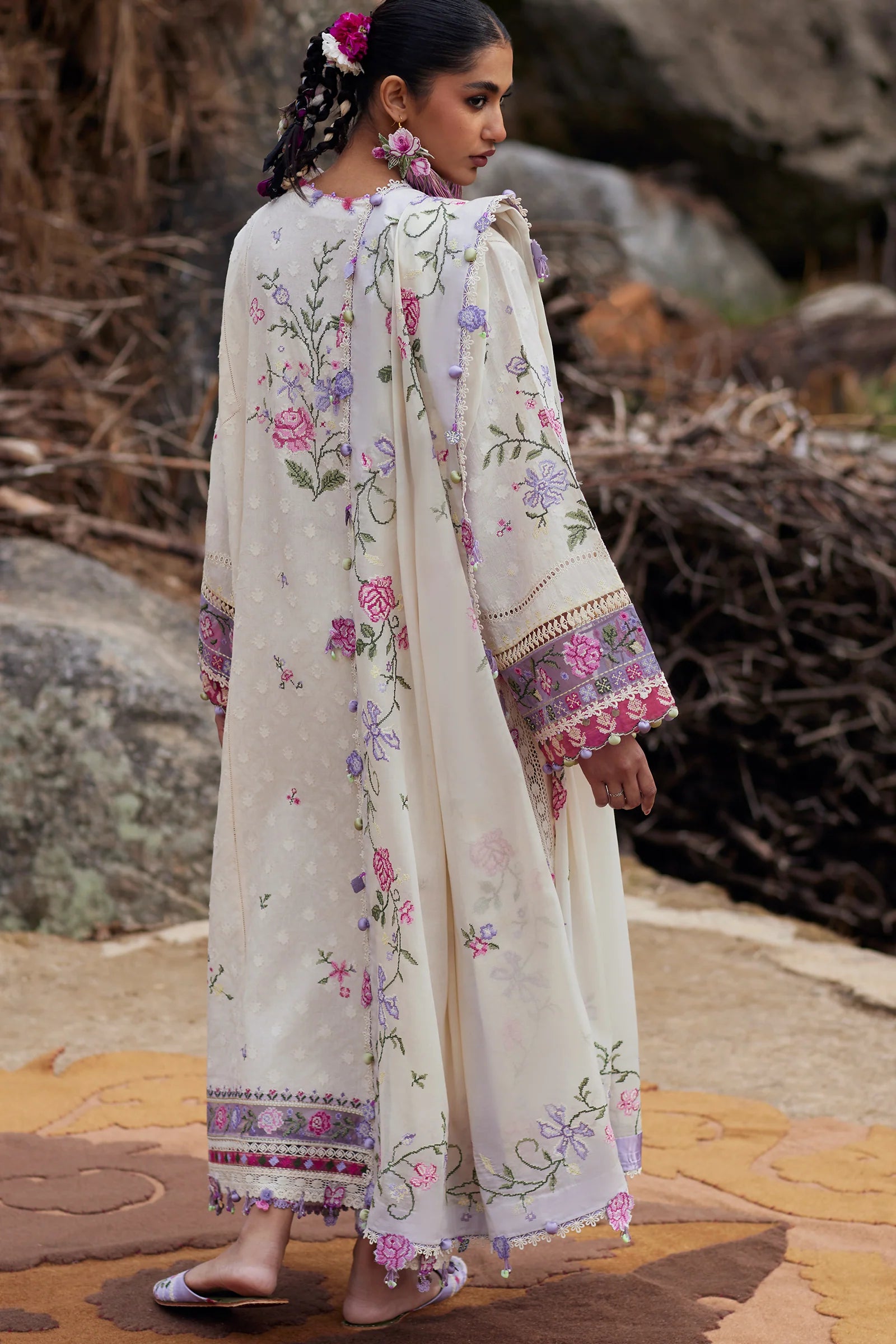 Embroidered Back Left Side Panel (Jacquard Lawn) 1 Piece